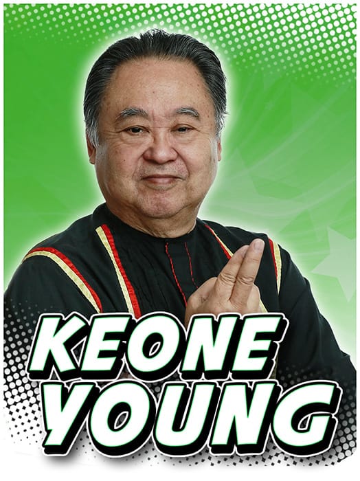 Keone Young is an Asian-American actor who is known for playing Mr. Wu from Deadwood and voicing Kaz Harada from Hi Hi Puffy AmiYumi. He also acted in Men in Black 3, Samurai Jack, Kung Fu Panda: Legends of Awesomeness, Codename: Kids Next Door, The Mighty B, American Dragon: Jake Long and the Spider-Man 3 video game. He speaks English, Japanese and Chinese.